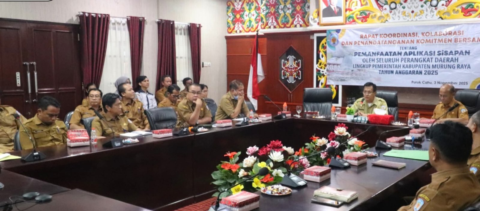 KaltengInside.com, Puruk Cahu – Pemkab Murung Raya (Mura) melalui Bagian Administrasi Pembangunan Setda menggelar Rapat Koordinasi (Rakor) vital pada Senin, 3 November 2025, bertempat di aula A kantor Bupati Mura. Fokus utama rakor adalah pengenalan mendalam tentang Aplikasi Sistem Informasi Pelaksanaan Pengendalian Pembangunan (SiSAPAN).