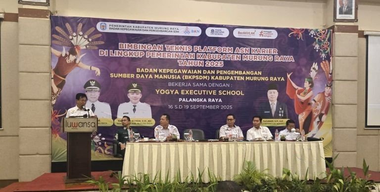 KaltengInside.com, Puruk Cahu – Pemerintah Kabupaten Murung Raya (Pemkab Mura) mengambil langkah maju dalam transformasi digital birokrasi dengan menggelar Bimbingan Teknis (Bimtek) Platform ASN Karier. Kegiatan ini secara resmi dibuka oleh Bupati Murung Raya, Heriyus, melalui Plt. Sekretaris Daerah (Sekda) Murung Raya, Sarwo Mintarjo, bertempat di Hotel Luwansa, Palangka Raya, pada hari Rabu, 17 September 2025.