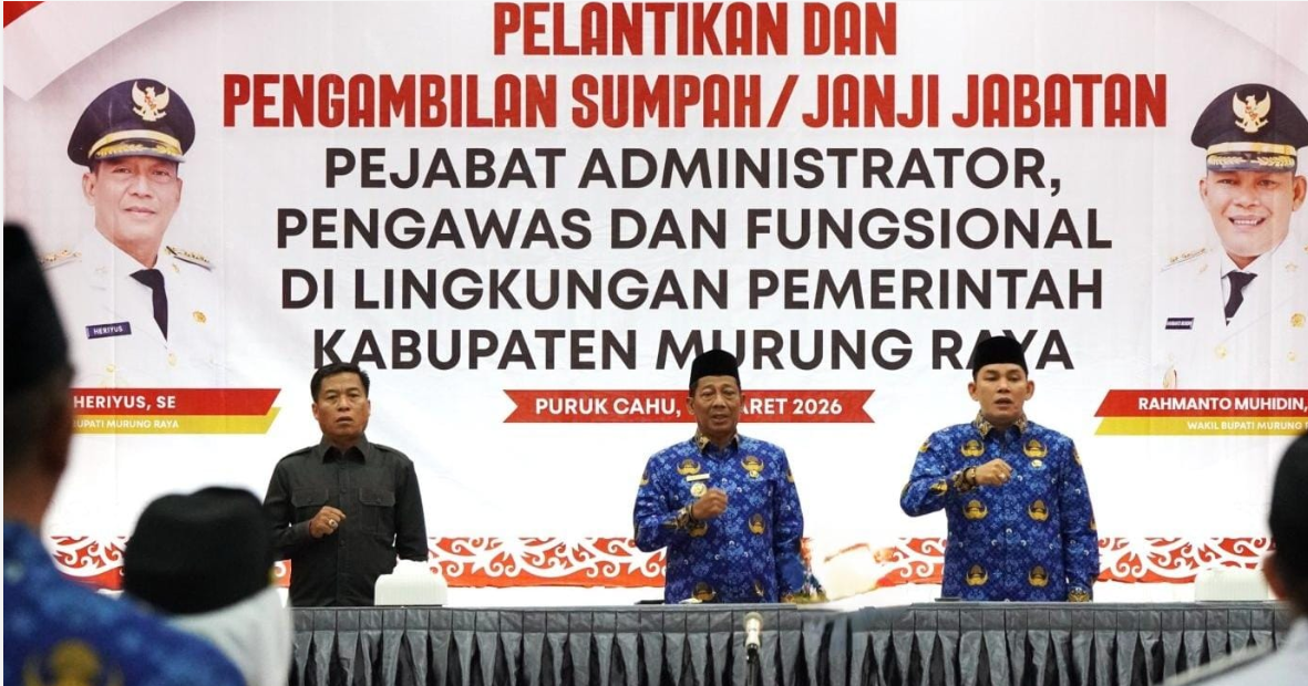 KaltengInside.com, Puruk Cahu – Ketua DPRD Murung Raya, Rumiadi, menghadiri langsung prosesi pelantikan 148 pejabat administrator dan pengawas di Gedung Pertemuan Umum Tira Tangka Balang, Senin (16/3/2026). Kehadirannya menjadi simbol penguatan fungsi pengawasan legislatif terhadap struktur birokrasi yang baru.